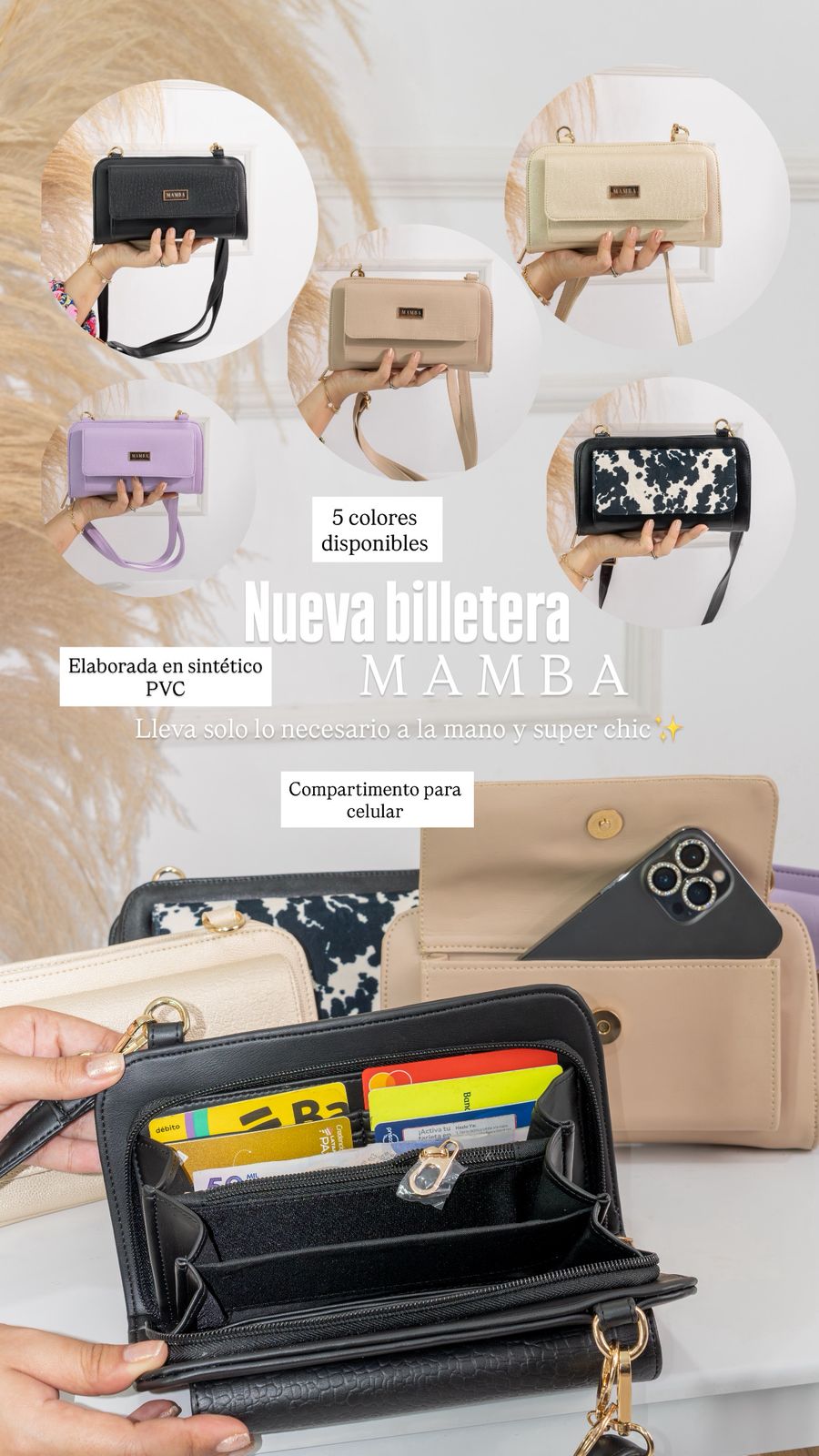 La billetera que estabas necesitando, en ella puedes llevar solo lo necesario y combina perfecto con cualquier outfit desde el más casual al más elegante, cuenta con su propio bolsillo para celular. Los accesorios se venden por separado